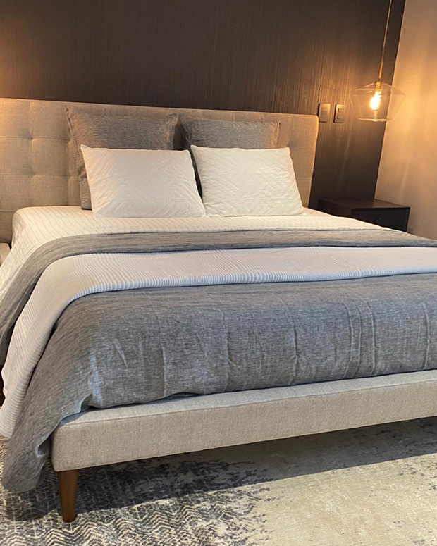 Dentro del modelo Matrix se recubrió la recamara principal en una gama de tonalidad gris oscuro